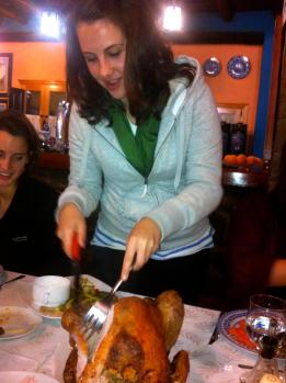 Unfortunately, I don’t have a lot of photos of our fantastic Thanksgiving feast (I was too busy stuffing my face), but I did carve the turkey and am damn proud of it! Other highlights of the night included the blueberry sauce (‘cranberry’ and ‘blueberry’ are the same word in Spanish) and sharing the wishbone with a friend.