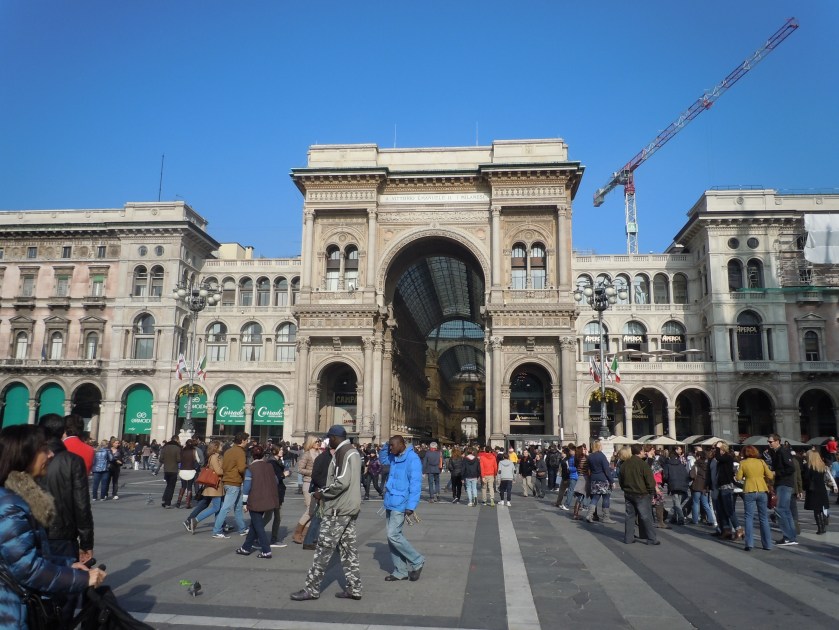 This is the main Plaza in Milan, containing the impressive Grand Cathedral of Milan. Daunting buildings and spectacular statues encircle the entire plaza and it is all just incredible to behold… if you can see past all of the people.